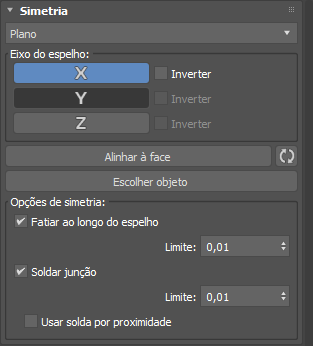 - Quando ativada, essa opção inverte a simetria para o lado oposto do eixo correspondente.