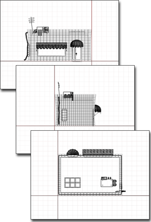 Se produzida em computador ou papel, a maioria dos projetos 3D repousa sobre representações em 2D para Descrição precisa de objetos e seu posicionamento. mapas de plantas, elevações e seções cruzadas são exemplos de representações em 2D. Cada uma destas vistas representa uma vista ortográfica. Em termos comuns, você pode considerar estas vistas "planas" ou "diretas," ou "olhando em ângulos retos."