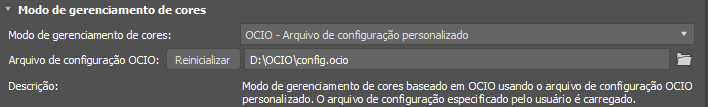 Com OCIO - Variável de ambiente, essa caixa de texto exibe o caminho resolvido da variável de ambiente OCIO e não pode ser editada.