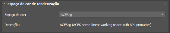 É o espaço de cor no qual os cálculos de sombreamento são executados. As entradas de cor são transformadas nesse espaço para renderização, e as imagens renderizadas são transformadas desse espaço para visualização.