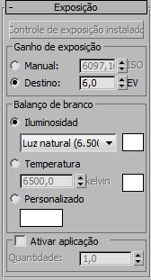 Se o controle de exposição da Câmera Física já estiver ativo, este botão estará desativado e sua legenda será "Controle de exposição já instalado".