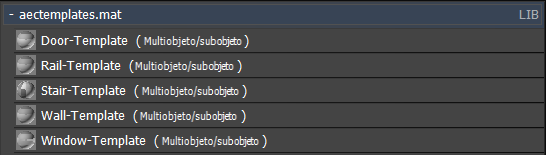 Uma vez criada a porta girante, você atribui um material múltiplo/Subobjeto de uma biblioteca de materiais para a porta. Quando você tem um único objeto, como esta porta, com componentes diferentes e distintos (como vidraças, estrutura, e assim por diante), é possível usar o material multi/subobjeto para aplicar diferentes materiais para suas várias peças.