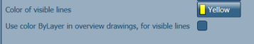 If the "Use color ByLayer in overview drawings, for visible lines" option is disabled, then the color of visible lines of the elements in general (overview) drawings will be set according to the "Color of visible lines" default.