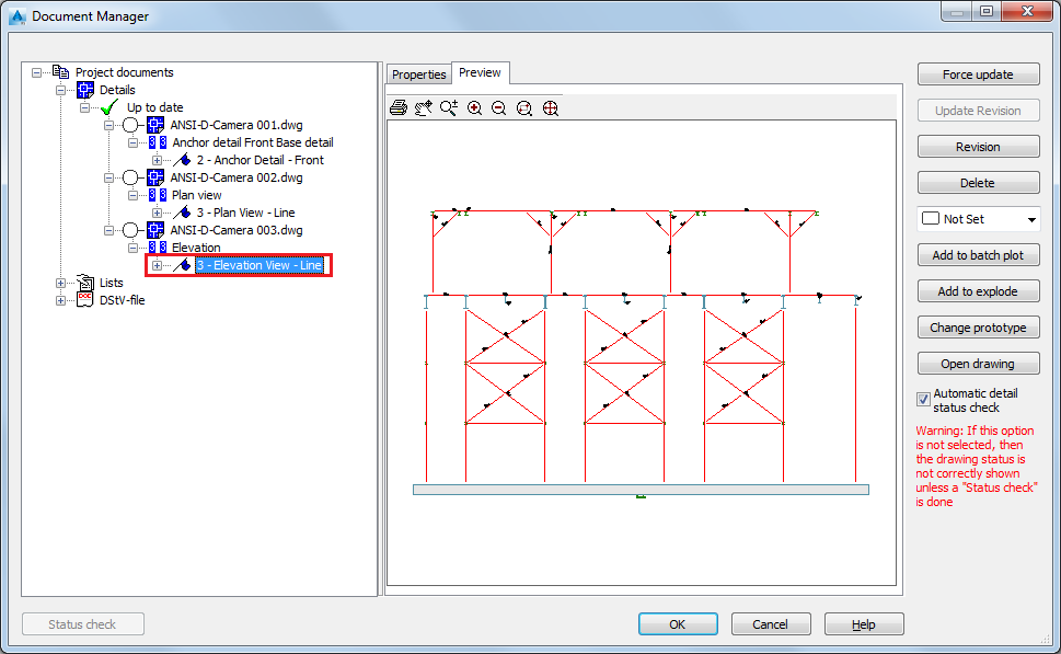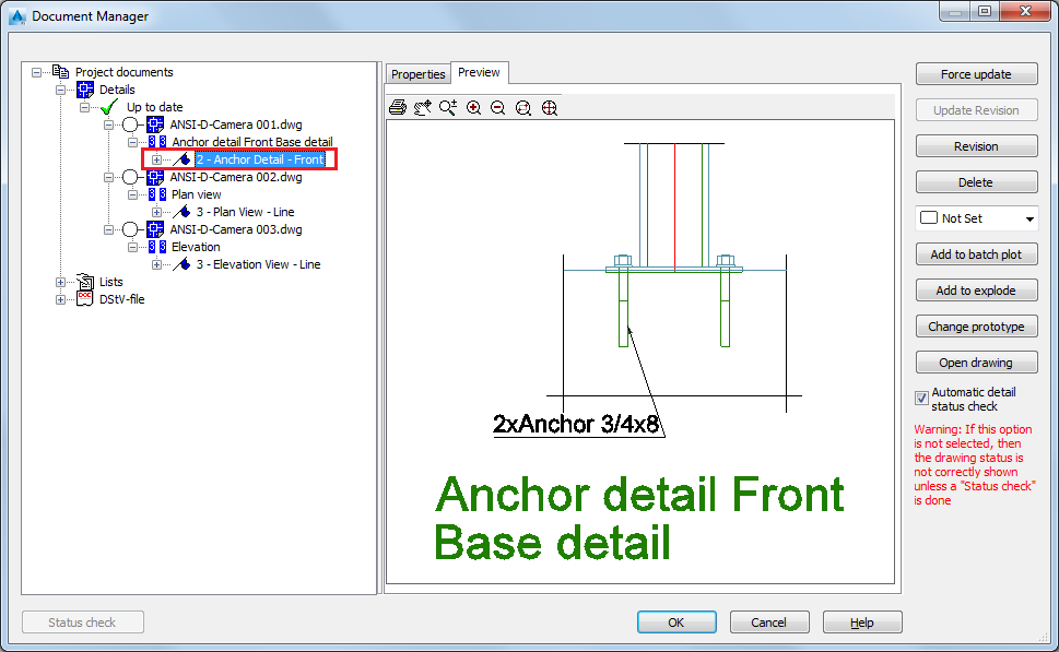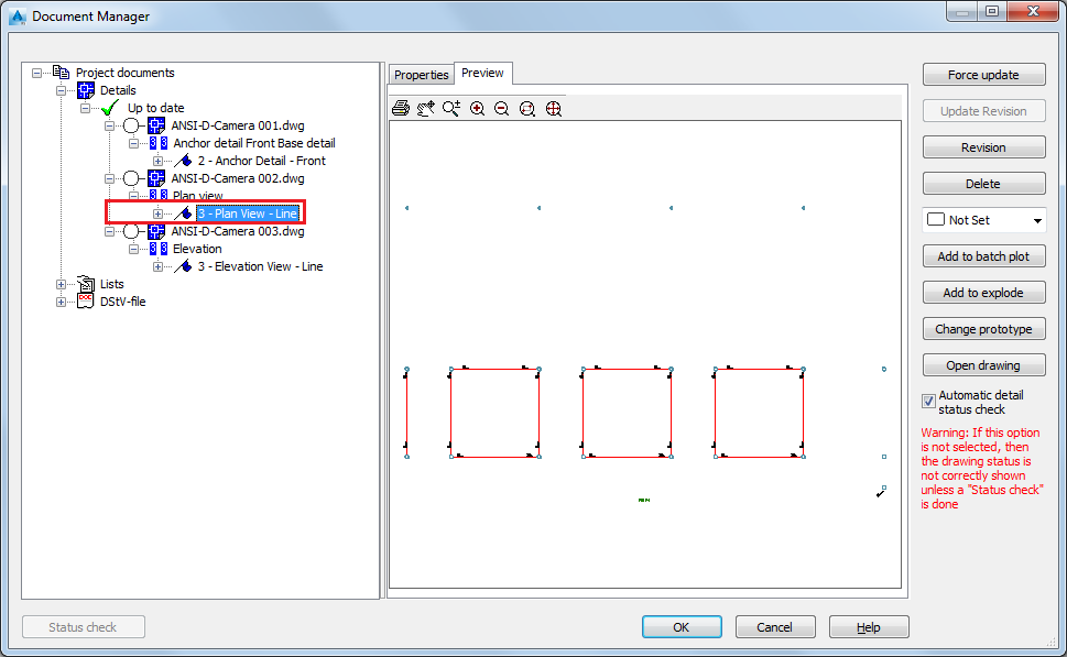 Your camera details are created using the drawing style set in the process detail map, for each type of camera: