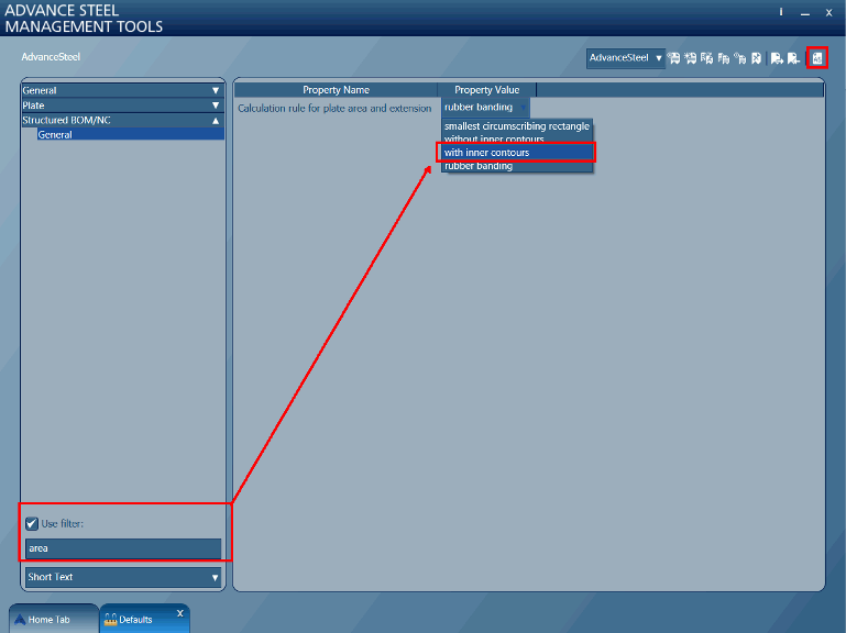 The total surface or paint area of plates can be displayed in BOM lists. The surface value takes into account any contour feature, chamfer or fillet which is present on the plate.