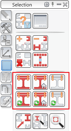 There are several functions that allow highlighting the connected objects, by marking them with red. These functions are grouped on the Selection tool palette and allow: