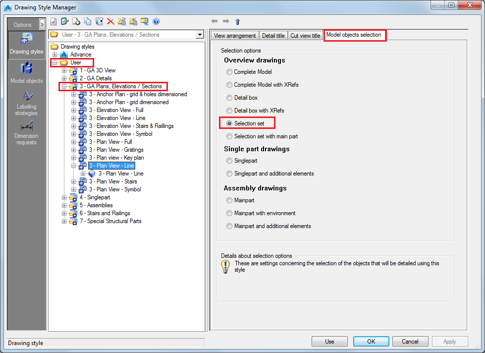 Notice that the drawing style used for creating the drawing is the one chosen in the Drawing Style Manager.