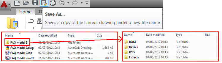 Advance Steel provides the option to copy, along with the model, all the derived documents generated from it. The Save as command is used when you want to create a backup of a model or when you want to copy model to another location.