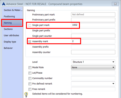 During numbering, the compound profiles in Advance Steel behave in 2 ways: