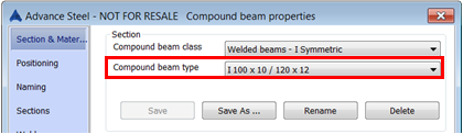 Advance Steel numbers the compound section to identify it, but the negative sign disallows the display of this profile as a compound section in drawings and lists.