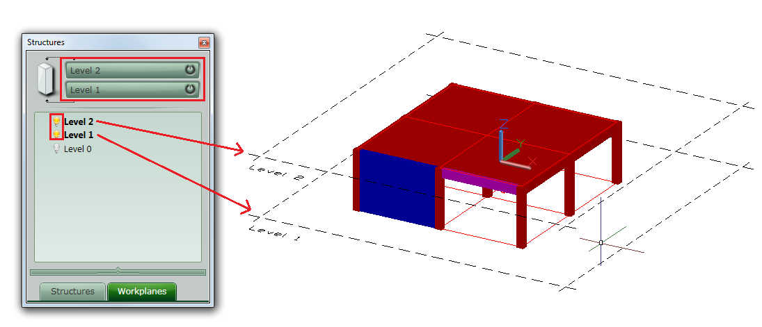 If a level is NOT activated, the new model elements will be created according to the UCS. To attach these newly created elements to levels: