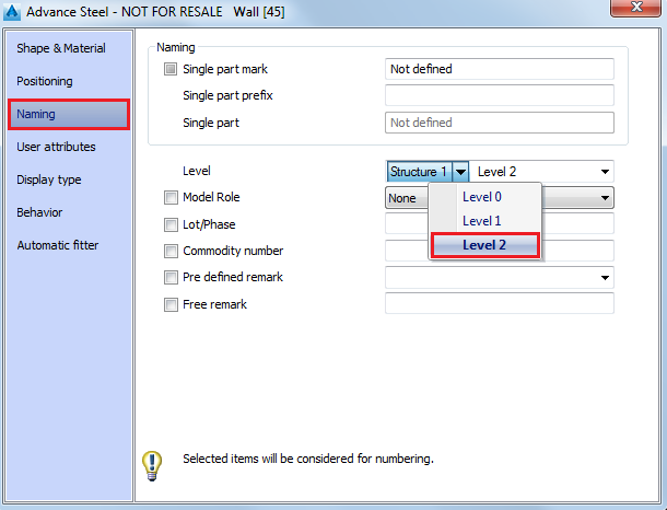 *To assign elements to a level, use the properties dialog of each element and select the desired level in the Naming tab, Level field.
