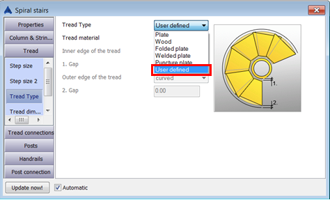 To create a user tread for a spiral stair you must follow these steps:
