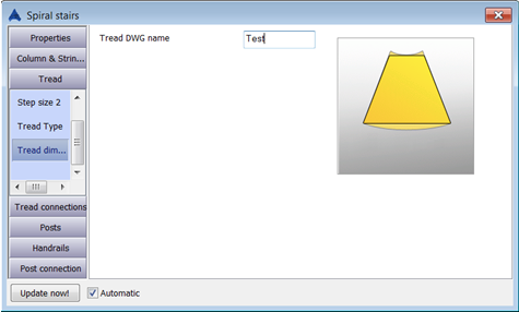 On the Tread dimensions tab enter the name of the drawing in which you saved the created tread (see the following figure).