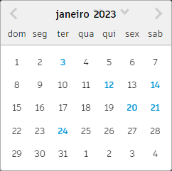 Personalizado – Exibe um calendário para selecionar duas ou mais datas. As datas especificadas são realçadas em azul.