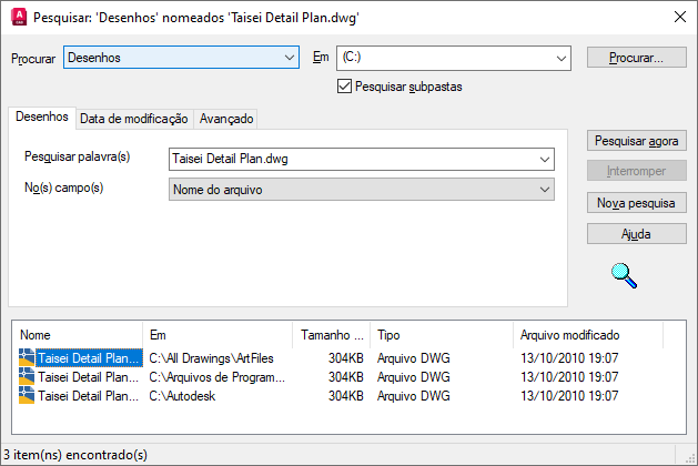 Especifica o nome do desenho, bloco, camada, refex ou outro tipo de conteúdo que deseja localizar.