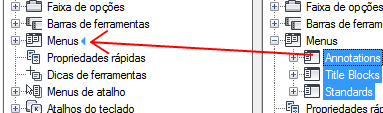 2. No editor Personalizar interface do usuário (CUI), guia Transferir, no painel esquerdo, clique no botão Abrir arquivo de personalização.