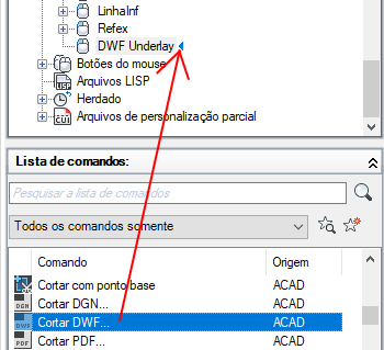 - No painel Lista de comandos, arraste o comando que deseja adicionar na ação de clique duplo no painel Personalizações em <nome do arquivo>.