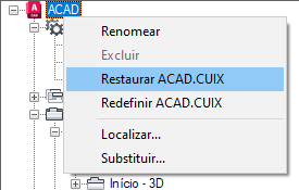 Nota: Ao redefinir, somente os arquivos CUIx encontrados na pasta UserDataCache sob o local de instalação do programa podem ser redefinidos.