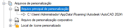 - No Explorador de arquivos, vá até <unidade>:\Usuários\<nome do perfil do usuário>\AppData\Roaming\Autodesk\<nome do produto>\<número da versão>\<idioma>\support\<nome do arquivo de personalização>.cuix.
