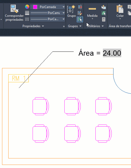 Há diversas formas de localizar as informações de área de um objeto ou usar pontos especificados. É possível usar a paleta Propriedades ou usar comandos como AREA, MEDIRGEOM ou LISTA.