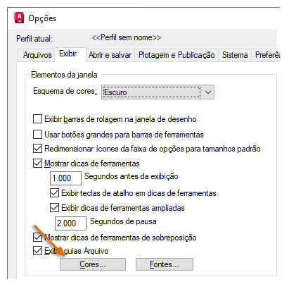 Personaliza as configurações do programa. Use a guia Desenho para alterar a cor e a fonte usadas pela janela Linha de comando