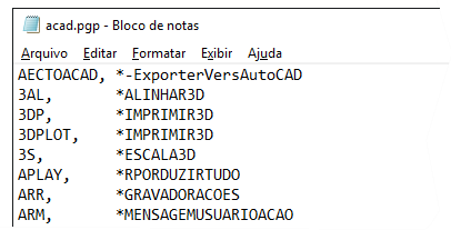 Dica: É possível usar aliases de comandos para reduzir o tempo necessário para iniciar um comando; em vez de mover o cursor do mouse pela interface do usuário para localizar um comando, o cursor do mouse pode permanecer na área de desenho e pronto para fornecer a entrada. Um alias de comando é um nome abreviado de um comando, frequentemente com uma ou duas letras. A lista Sugestões de preenchimento automático exibe aliases de comandos com o comando a ser iniciado entre parênteses. É possível visualizar ou imprimir uma lista completa de todos os aliases de comandos clicando na guia Gerenciar > painel Personalização > Editar alias > Editar alias.