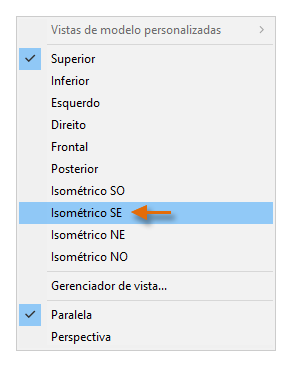 Para retornar a uma vista padrão, clique em [Personalizado] nos controles da viewport e escolha Isométrico SE novamente.
