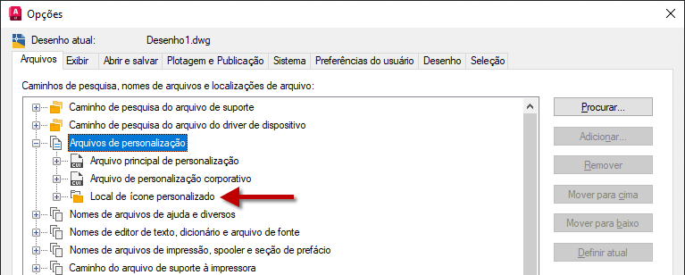 <unidade>:\Users\<perfil do usuário>\AppData\Autodesk\<versão do produto>\<número da versão>\<idioma>\Arquivos personalizados da versão anterior