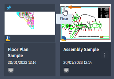 - O ícone de pino agora aparece no canto superior esquerdo quando você passa o cursor sobre a miniatura de um desenho.