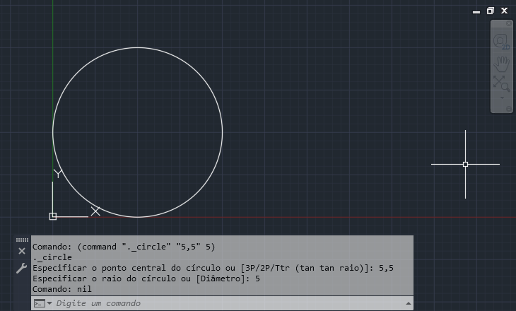 Um círculo é desenhado na camada atual com um raio de 5 unidades a 5,5.