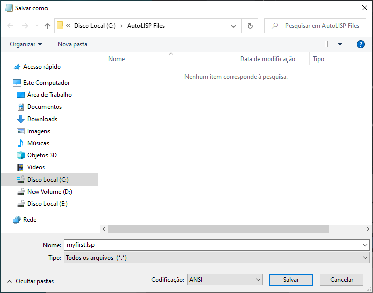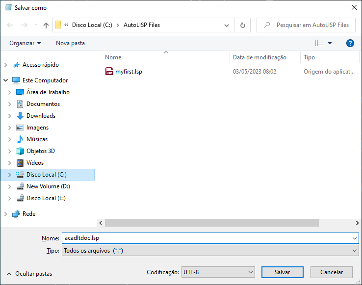 Se você criou o arquivo myfirst.lsp na seção anterior, poderá selecioná-lo.
