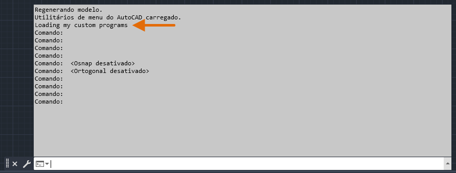 O arquivo do AutoLISP adicionado ao Conjunto de inicialização é automaticamente carregado no desenho atual.