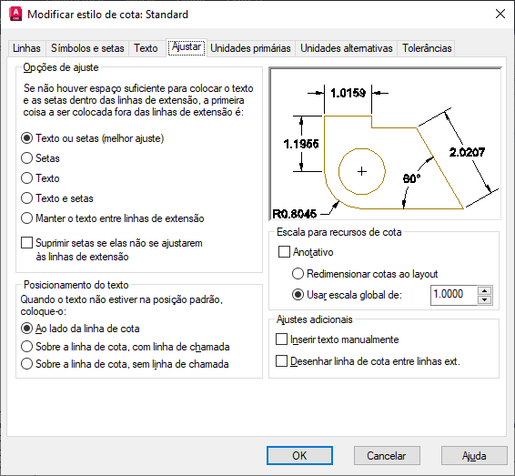 Fornece opções adicionais para o posicionamento do texto de cotas.