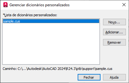Permite criar um dicionário personalizado. O novo dicionário é realçado como o atual.