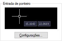 Quando uma entrada de ponteiro (cursor) estiver ativada e um comando estiver em andamento, a localização da coordenada da mira é exibida nas caixas de entrada da dica de ferramenta, junto ao cursor. Você pode inserir coordenadas na dica de ferramenta em vez de inseri-las na linha de comando.