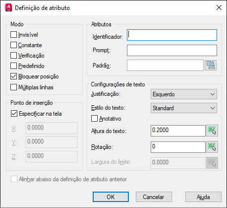 Especifica que o atributo é anotativo. Se o bloco for anotativo, o atributo irá corresponder à orientação do bloco.
