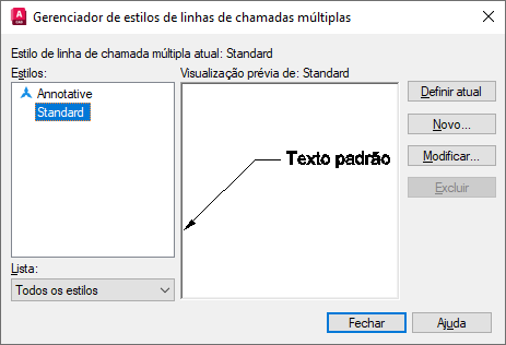 Define o estilo selecionado na lista Estilos como o estilo atual. Todas as novas linhas de chamada múltipla são criadas usando este estilo.