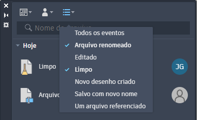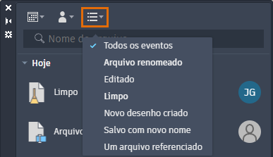 O menu Filtro de usuários contém somente os usuários que executaram eventos no desenho atual.