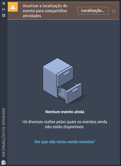 Importante: No momento, o AutoCAD LT não oferece suporte à visualização das Informações de atividade. No entanto, o AutoCAD LT não suporta o registro de eventos de desenho. Para assegurar que você capture todos os eventos de desenho, os colaboradores que usam o AutoCAD LT devem definir a variável de sistema ACTIVITYINSIGHTSPATH no prompt de comando para a mesma localização compartilhada.