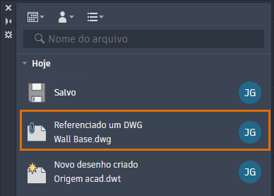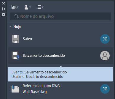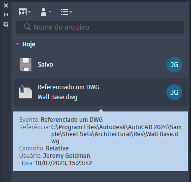 Nota: Quando as Informações de atividade estiverem rastreando eventos para todos os colaboradores, você terá uma maneira fácil de ver quais desenhos fazem referência a um determinado desenho antes de fazer quaisquer alterações nele.