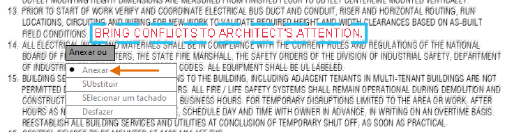 Há duas opções para o texto tachado; substituir ou apagar o texto existente. Neste exemplo, substituiremos o texto existente pelo texto da marca de revisão ao lado dele.