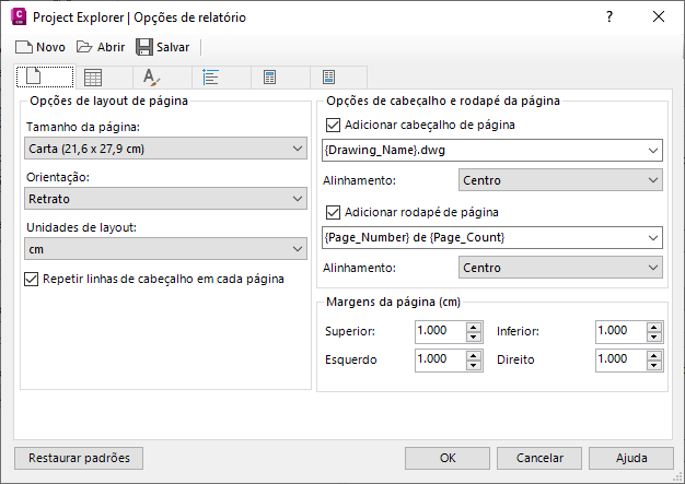 Nesta caixa de diálogo, você definirá o layout do relatório de saída.