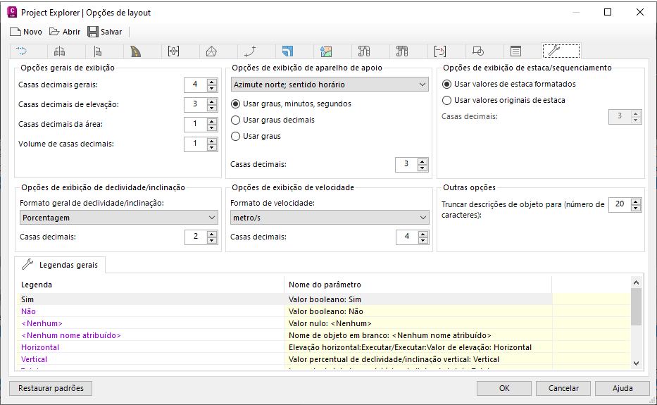 A caixa de diálogo Opções de layout é aberta.