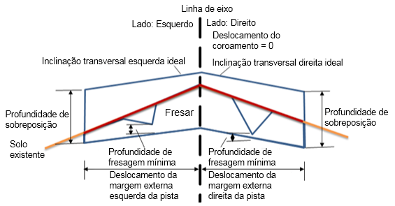 | Inclinação transversal esquerda ideal | Especifica a inclinação transversal esquerda ideal definida pelo usuário. | Numérico, negativo | -2.00% |
