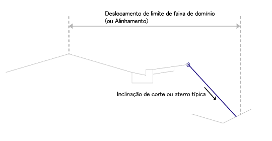 Se a inclinação típica não abranger a ROW (faixa de domínio), uma inclinação mais acentuada será utilizada. Se a inclinação mais acentuada ainda não abranger a ROW, o usuário terá opções de controlar o comportamento.