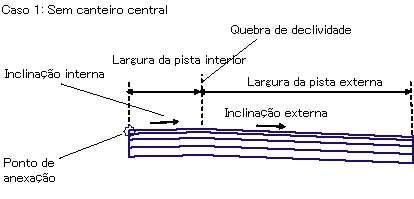 Largura da pista interior para a condição em que não há um canteiro central; isto é, desde o ponto de anexação até o ponto de quebra de nível. |