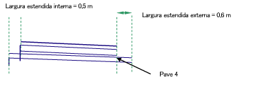 No exemplo a seguir, a Largura estendida interior do pavimento 4 é de 0.5 metros. A largura estendida do Pave4 é zero. Se esta submontagem for inserida no lado correto, ela será desenhada conforme mostrado na ilustração a seguir.