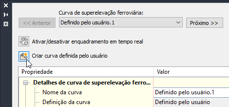 Para obter mais informações, consulte a caixa de diálogo Gerenciador de curva em superelevação ferroviária.