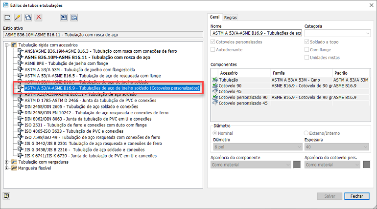 Para obter mais informações, consulte Para criar novos estilos de tubos e tubulações.